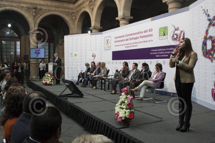 MÉXICO, D.F., 17OCTUBRE2013.- Miguel Ángel Mancera, Jefe de Gobierno, se toma la foto con la cabaretera Ana Francis y la actriz Gabriela Garza, al finalizar la ceremonia conmemorativa del 60 Aniversario del Sufragio Femenino en el Antiguo Palacio del Ayuntamiento. FOTO: MOISÉS PABLO /CUARTOSCURO.COM