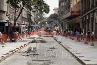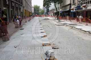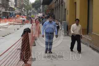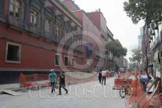 MÉXICO, D.F., 18OCTUBRE2013.- Continúan los trabajos de remodelación de la calle 16 de Septiembre en el Centro Histórico esto para ampliar las banquetas y solamente dejar un carril para la circulación de los automóviles, hasta el momento solamente se han avanzado los trabajos del Eje Central a Bolivar. FOTO: MOISÉS PABLO /CUARTOSCURO.COM