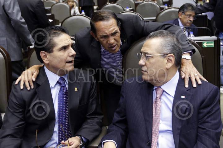 MÉXICO, D.F., 18OCTUBRE2013.- Durante la sesión los diputados Manlio Fabio Beltrones, coordinador del PRI, Luis Alberto Villareal, coordinador del PAN, José Isabel Trejo, diputado del PAN y Arturo Escobar y Vega, coordinador del PVEM, durante la sesión en la Cámara Alta. FOTO: CUARTOSCURO.COM