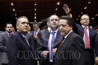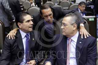 MÉXICO, D.F., 18OCTUBRE2013.- Durante la sesión los diputados Manlio Fabio Beltrones, coordinador del PRI, Luis Alberto Villareal, coordinador del PAN, José Isabel Trejo, diputado del PAN y Arturo Escobar y Vega, coordinador del PVEM, durante la sesión en la Cámara Alta. FOTO: CUARTOSCURO.COM