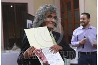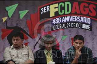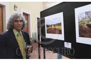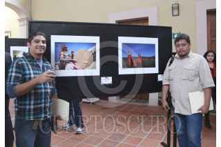 AGUASCALIENTES, AGUASCALIENTES, 19OCTUBRE2013.- Enrique Rashide Serrato Frías y Juan Carlos Reyes, ganadores del segundo y tercer lugar, respectivamente, del Concurso "Fiestas y festejos populares en México", convocado por el Instituto Municipal Aguascalentense para la Cultura y Cuartoscuro durante la inauguración ayer en el Museo Regional de Historia de Aguascalientes. FOTO: RITA SANTIAGO /CUARTOSCURO.COM