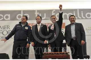 MÉXICO, D.F., 19OCTUBRE2013.- El jefe de gobierno del Distrito Federal, Miguel Ángel Mancera, junto con el secretario de Seguridad de la Ciudad de México, Jesús Rodríguez Almeida, asistió Asistió al primer informe de gobierno del delegado de Azcapotzalco, Sergio Palacios Trejo. FOTO: IVAN MENDEZ /CUARTOSCURO.COM