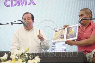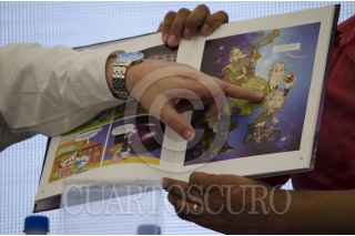 MÉXICO DF, 19OCTUBRE2013.- José Gordon, escritor y divulgador de la ciencia, presentó el libro infantil “La oveja eléctrica”, publicación en donde colaboró con el ilustrador “Micro”. Ante un público en su mayoría infantil dijo que “la ciencia y la literatura debe ser accesible para todos, porque también el conocimiento es popular; no necesitamos ser científicos para apreciar la lectura de la ciencia”. FOTO: MARÍA JOSÉ MARTÍNEZ / CUARTOSCURO.COM