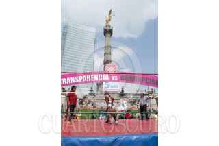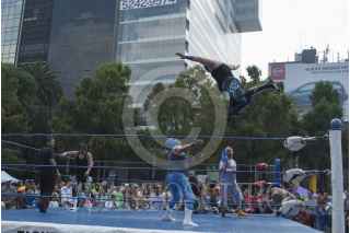 MÉXICO, D.F., 20OCTUBRE2013.- Como parte de la 5° Feria de la Transparencia realizada en avenida reforma, a la altura del Ángel de la Independencia, en donde se instalaron 172 estantes para que dependencias del Distrito Federal dieran respuesta a las dudas de los ciudadanos; un grupo de luchadores realizó una demostración. FOTO: MITZI BLANQUET /CUARTOSCURO.COM