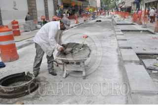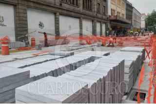 MÉXICO, D.F., 21OCTUBRE2013.- Trabajadores continúan con las labores de remodelación de la calle 16 de Septiembre en el Centro Histórico para convertir la calle en semi peatonal y un carril de circulación vehicular. FOTO: DIEGO SIMÓN SÁNCHEZ /CUARTOSCURO.COM