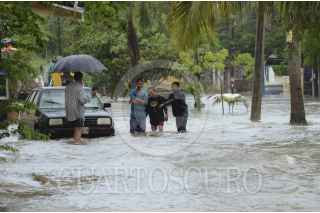 ACAPULCO, GUERRERO, 21OCTUBRE2013.- Inundaciones provocadas por el paso del huracán Raymond en el Conjunto residencial Villas del Mar asentamiento ubicado en la zona del Acapulco Diamante, donde acudieron soldados y marinos y personal de Protección Civil del gobierno del estado a realizar la evacuación de cien familias. FOTO: BERNANDINO HERNÁNDEZ /CUARTOSCURO.COM