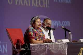 MÉRIDA, YUCATÁN, 21OCTUBRE2013.- En el marco del Festival Internacional de la Cultura Maya (FICMaya) 2013, el Gobernador Rolando Zapata Bello entregó la presea a la indígena guatemalteca, Rigoberta Menchú Tum quien por su labor como luchadora social y defensora de los derechos de esta civilización ha recibido el Premio Nobel de la Paz 1992, y hoy se convirtió en la primera persona en recibir la medalla “Yuri Knórozov”, distinción que reconoce a las mujeres y hombres del Mundo Maya o de cualquier otra parte del orbe que participan con su voz, experiencia de vida, principios y saberes tradicionales en el debate internacional sobre este tema. FOTOS: FRANCISCO BALDERAS /CUARTOSCURO.COM