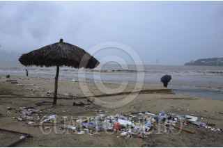 ACAPULCO, GUERRERO, 21OCTUBRE2013.- Ante el huracán Raymond que azota al puerto de Acapulco las playas lucen vacías y se puede apreciar basura arrastrada por la precipitación tropical. FOTO: BERNANDINO HERNÁNDEZ /CUARTOSCURO.COM