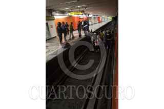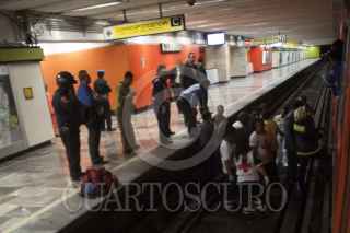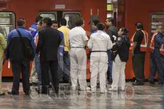 MÉXICO, D.F., 22OCTUBRE2013.- Una persona perdió la vida aproximadamente a las 9:30 hrs al aventarse al paso del convoy del Metro en la estación La Raza de la Linea 3 por lo que el servicio se vio interrumpido por alrededor de 30 minutos; los servicios de emergencia acudieron al lugar para levantar el cuerpo. FOTO: RODOLFO ANGULO /CUARTOSCURO.COM