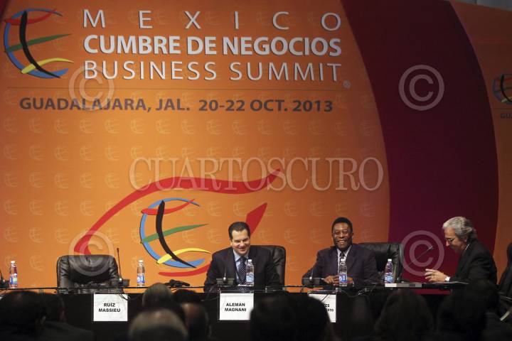 GUADALAJARA, JALISCO, 22OCTUBRE2013.-Enrique Peña Nieto, Presidente de México, ofreció una Conferencia Magistral, en donde estuvieron presentes, Miguel Alemán Velasco, ex gobernador del estado de Veracruz y Presidente de la Cumbre, así como el Gobernador del Estado, Jorge Aristóteles Sandoval Díaz, esto en el marco de la edición XI de la Cumbre de Negocios “México: Nueva Visión en el Contexto Internacional” que se celebra del 20 al 22 de octubre en Expo Guadalajara. FOTO: FERNANDO CARRANZA /CUARTOSCURO.COM