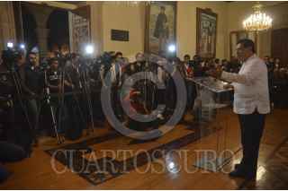 MORELIA, MICHOACÁN, 21OCTUBRE2013.- Jesús Reyna, quién hasta el día de hoy realizaba funciones como gobernador interino, convoco a los medios para informar que el Lic. Fausto Vallejo retomaría sus funciones como gobernador constitucional y que no regresaría a formar parte del gabinete estatal y a la brevedad dejaría saber a los medios su futuro como servidor público. FOTO: ALAN ORTEGA /CUARTOSCURO.COM