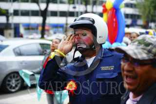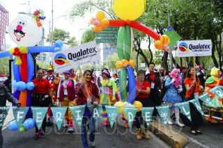 MÉXICO, D.F., 23OCTUBRE2013.- En el paseo de la Reforma marcharon "Los payasos de la Feria de la Risa", quienes presumieron sus trajes multicolor y sus disfraces a los peatones y a quienes circulaban desde sus automoviles. FOTO: ALEJANDRO NEYRA /CUARTOSCURO.COM