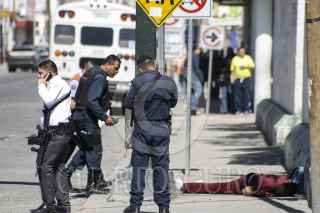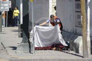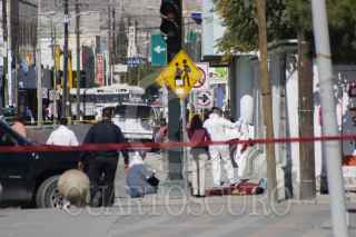 CIUDAD JUÁREZ, 25OCTUBRE2013.- Esta tarde tres sujetos asesinaron a un joven de 16 años al salir de la preparatoria Ignacio Allende en el cruce de la avenida Vicente Guerrero y Ramón Corona. Los primeros reportes indican que los sujetos abordaron al joven que aún portaba el uniforme en compañía de otras dos jovencitas, quienes resultaron heridas al recibir impactos de bala. FOTO: NACHO RUIZ /CUARTOSCURO.COM