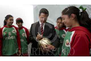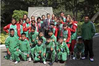 MÉXICO, D.F., 25OCTUBRE2013.- El equipo infantil femenil de basquetbol Bayonetas del estado de Puebla y el equipo infantil varonil de basquetbol Triqui del estado de Oaxaca, quienes ganaron Festival Mini Básquet en Argentina, fueron recibidos en la residencia oficial de los Pinos por Enrique Peña Nieto, presidente de México. FOTO: PRESIDENCIA /CUARTOSCURO.COM