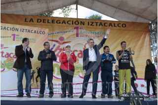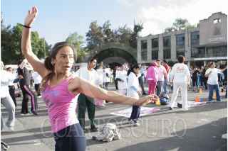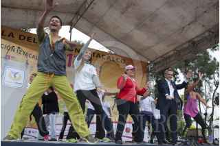 MÉXICO, D.F., 26OCTUBRE2013.- El jefe de gobierno del Distrito Federal, Miguel Ángel Mancera, y la jefa delegacional de Iztacalco, Elizabeth Mateos Hernández, bailaron zumba durante el primer aniversario del programa “Muévete Iztacalco”, que consiste en reunir cada ocho días a miembros de la delegación para bailar zumba y hacer ejercicio. FOTO: MITZI BLANQUET /CUARTOSCURO.COM