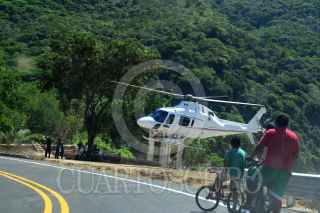 TIERRA COLORADA, GUERRERO, 26OCTUBRE2013.-El gobernador de Guerrero Ángel Aguirre Rivero y el Secretario de Comunicaciones y Transporte (SCT) Gerardo Ruiz Esparza, inauguraron al reapertura del puente Papagayo ubicado en el kilómetro 72 de la carretera federal México Acapulco. En la población que lleva el mismo nombre del puente, en la imagen del helicóptero que trasporta algunos funcionarios que a las 12 horas abrieron el paso del puente que colapso por la creciente del rio Papagayo, durante la tormenta Manuel e Ingrid, puente que fue construido en los años 50 . FOTO: JOSÉ I. HERNÁNDEZ /CUARTOSCURO.COM