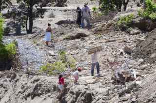 TIERRA COLORADA, GUERRERO, 26OCTUBRE2013.- Pobladores cercanos al puente Papagayo, piden ayuda al gobierno, quien aseguran solo ha mandado despensas y butacas para las escuelas a forma de apoyo "la ayuda para restablecer nuestra viviendas no ha llegado, hoy solo inauguraron el paso del puente" observaron pobladores de esta localidad. FOTO: JOSE I. HERNANDEZ /CUARTOSCURO.COM