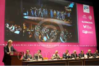 GUANAJUATO, GUANAJUATO, 27OCTUBRE2013.- Rafael Tovar y de Teresa, presidente del Consejo Nacional para la Cultura y las Artes, el director del FIC, Jorge Volpi, el gobernador del estado, gobernador Miguel Márquez Márquez , y el presidente municipal, Luis Fernando Gutiérrez Márquez encabezaron la ceremonia de clausura del XXXXI Festival Internacional Cervantino, en Guanajuato. FOTO: ARTURO LÓPEZ/ CONACULTA / CUARTOSCURO.COM