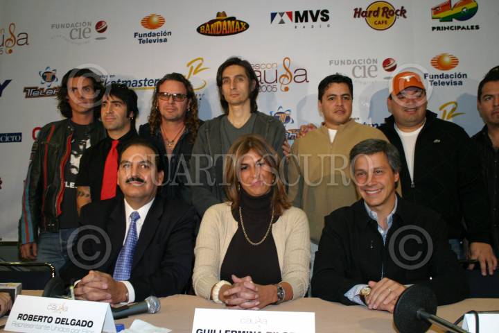 MEXICO D.F. 27OCTUBRE2005.- Roberto Delgado, Guilermina Delgado, Claudio X. Gonzalez, Los grupos músicales, Jaguares, Maná e Intocable al termino de la conferencia donde anunciaron el nacimiento de Voces con Causa 2005. FOTO: Nelly Salas/CUARTOSCURO.COM