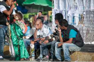 MÉXICO, D.F., 28SEPTIEMBRE2013.- Miles de fieles a San Judas Tadeo se congregan en el Templo de San Hipólito para celebrar al santo conocido como “el de las causas difíciles”. La mayoría de la gente lleva imágenes o figuras de San Judas para poder bendecirlas y así poder agradecer un favor conseguido o pedir uno nuevo. FOTO: DIEGO SIMÓN SÁNCHEZ / CUARTOSCURO.COM