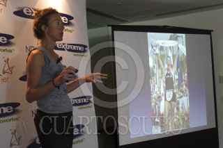 MÉXICO, D.F., 29OCTUBRE2013.- Chrissie Wellington, 4 veces campeona mundial de Iron Man, durante la conferencia ofrecida a lo representante de los medios de comunicación donde compartió historias, consejos, consejos e ideas sobre triatlón y deportes de resistencia. FOTO: GUILLERMO PEREA /CUARTOSCURO.COM