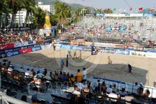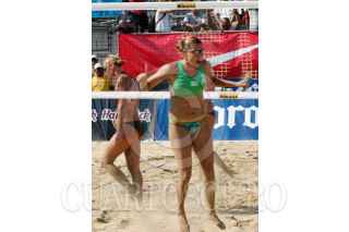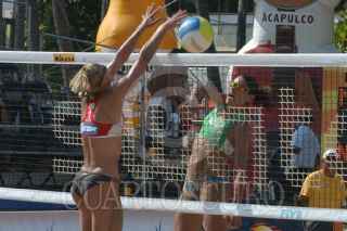 ACAPULCO,GUERRERO.-27OCTUBRE2005.- La mexicana Hilda Gaxiola festeja el punto del triunfo ante las holandesas Leenstra/Keizer quienes fueron derrotadas por la dupla mexicana en el Swatch-FIVB World Tour 2005 Corona Open Acapulco Foto: Eric Miralrìo /CUARTOSCURO.COM