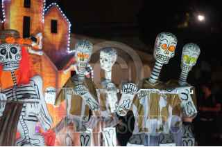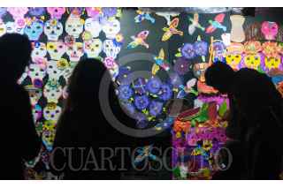 MÉXICO D.F., 30OCTUBRE2013.- Anoche se inauguró la tradicional megaofrenda en las islas de la explanada de Ciudad Universitaria de la UNAM. Decenas de escuelas y universidades participan con el montaje de alguna ofrenda que este año rinde homenaje a la pintora Remedios Varo. FOTO: DIEGO SIMÓN SÁNCHEZ /CUARTOSCURO.COM