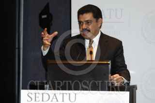 MÉXICO, D.F 30OCTUBRE2013.- Francisco Olvera, gobernador de Hidalgo durante el foro temático nacional: "Ordenamiento Territorial y Desarrollo Metropolitano" que se realizó en un hotel del Centro Histórico. FOTO: RODOLFO ANGULO / CUARTOSCURO.COM