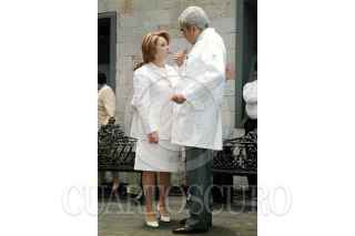 La señora Maria Teresa Uriarte de Labastida platica con un galeno del hostipal de México, durante la visita del abanderado priista por el mosocomio, el ex gobernador de Sinaloa pidio solo que lo acompañara durante el recorrido las camaras de television.