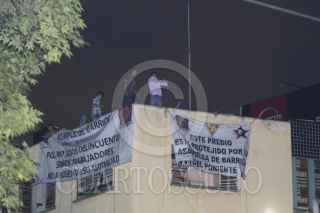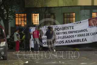 MÉXICO, D.F., 31OCTUBRE2013.- En las calles de Benjamín Hill y Altata de la colonia Condesa, colocaron una mantas a fuera del edificio que habitan después de arrojar piedras a los policías que realizaban un operativo contra franeleros de está zona. FOTO: GUILLERMO PEREA /CUARTOSCURO.COM
