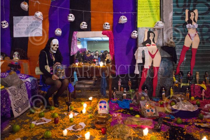 MÉXICO, D.F., 31OCTUBRE2013.- Sexo servidoras del barrio de la Merced, montaron una ofrenda y escucharon misa sobre la Avenida San Pablo en la esquina con la calle Las Cruces con motivo de las festividades de día de muertos. Las trabajadoras también pidieron por las compañeras que han fallecido. FOTO: ENRIQUE ORDÓÑEZ /CUARTOSCURO.COM