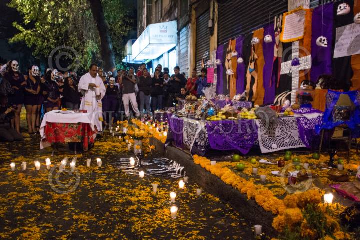 MÉXICO, D.F., 31OCTUBRE2013.- Sexo servidoras del barrio de la Merced, montaron una ofrenda y escucharon misa sobre la Avenida San Pablo en la esquina con la calle Las Cruces con motivo de las festividades de día de muertos. Las trabajadoras también pidieron por las compañeras que han fallecido. FOTO: ENRIQUE ORDÓÑEZ /CUARTOSCURO.COM