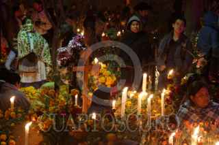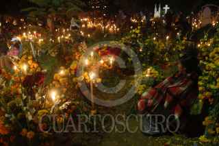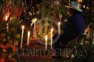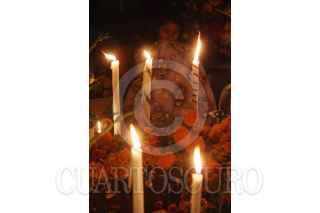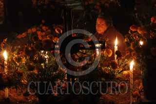 SANTA MARÍA ATZOMPA, OAXACA, 01NOVIEMBRE2013.- Como lo marca la tradición los fieles visitaron la noche del 31 de octubre los distintos cementerios del estado de Oaxaca para realizar la velada de los difuntos que ya descansan en el camposanto. En esta tradición los familiares acuden y adornan las tumbas de sus seres queridos con flores de cempazuchitl y velas, permaneciendo toda la noche en el lugar. FOTO: ARTURO PÉREZ ALFONSO /CUARTOSCURO.COM