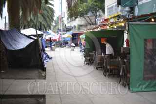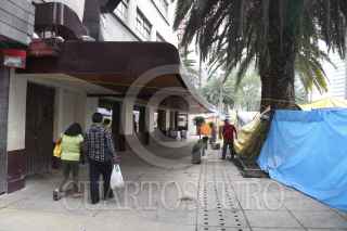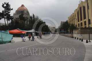 MÉXICO, D.F., 01NOVIEMBRE2013.- Maestros de la Coordinadora Nacional de Trabajadores de la Educación que mantiene el plantón en el Monumento a la Revolución, movieron algunas carpas y lonas para abrir espacios, como parte del acuerdo de compactar el plantón en el mismo. FOTO: ADOLFO VLADIMIR /CUARTOSCURO.COM