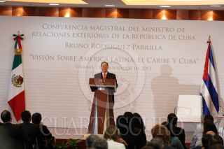 MÉXICO, D.F., 01NOVIEMBRE2013.- El ministro de Relaciones Exteriores de Cuba, Bruno Rodríguez Parrilla, ofreció la conferencia magistral "Visión sobre América Latina, El Caribe y Cuba", en donde señaló que la actualización del modelo económico y social de su país, no representa un proceso de privatización. FOTO: SÁUL LÓPEZ /CUARTOSCURO.COM