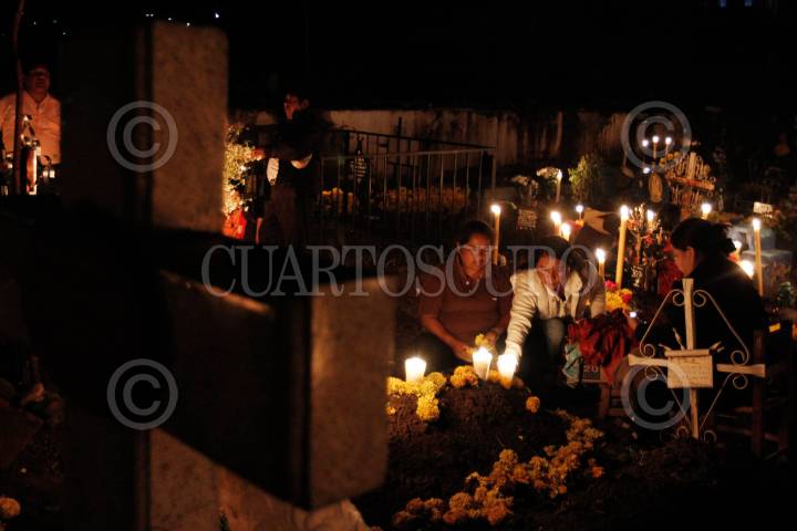 ACATLÁN DE OSORIO, PUEBLA, 02NOVIEMBRE2013.- Cientos de habitantes de la comunidad de Acatlán de Osorio en Puebla, acompañan a sus difuntos con velas, flores, música y rezos durante toda la noche en que estos regresan al mundo de los vivos según la tradición de todos santos. FOTO: HILDA RÍOS /CUARTOSCURO.COM