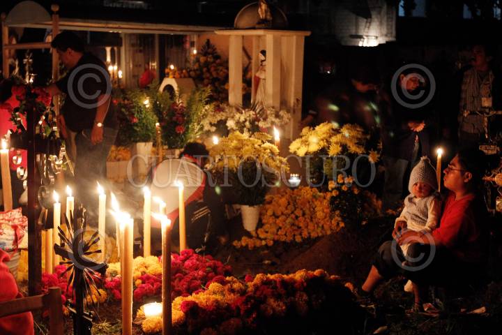 ACATLÁN DE OSORIO, PUEBLA, 02NOVIEMBRE2013.- Cientos de habitantes de la comunidad de Acatlán de Osorio en Puebla, acompañan a sus difuntos con velas, flores, música y rezos durante toda la noche en que estos regresan al mundo de los vivos según la tradición de todos santos. FOTO: HILDA RÍOS /CUARTOSCURO.COM