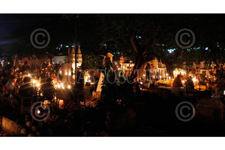 ACATLÁN DE OSORIO, PUEBLA, 02NOVIEMBRE2013.- Cientos de habitantes de la comunidad de Acatlán de Osorio en Puebla, acompañan a sus difuntos con velas, flores, música y rezos durante toda la noche en que estos regresan al mundo de los vivos según la tradición de todos santos. FOTO: HILDA RÍOS /CUARTOSCURO.COM