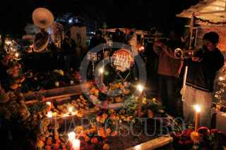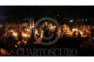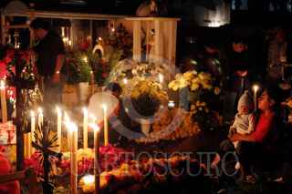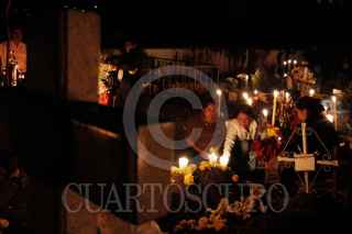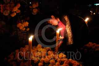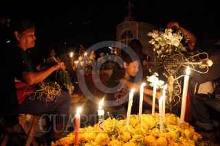ACATLÁN DE OSORIO, PUEBLA, 02NOVIEMBRE2013.- Cientos de habitantes de la comunidad de Acatlán de Osorio en Puebla, acompañan a sus difuntos con velas, flores, música y rezos durante toda la noche en que estos regresan al mundo de los vivos según la tradición de todos santos. FOTO: HILDA RÍOS /CUARTOSCURO.COM