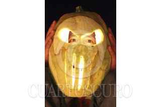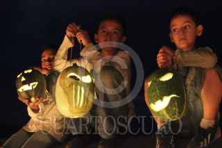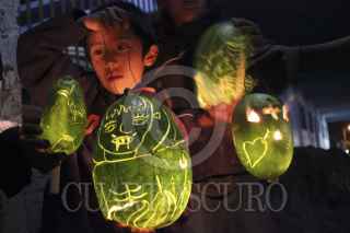 NAHUATZEN, MICHOACÁN, 02NOVIEMBRE2013.- Niños indígenas Purépechas de la comunidad de Turicuaro mantienen viva la practica de las Calaveras que desde antes de la conquista española se venia realizando para la noche del día de muertos, que son elaboradas de calabaza y que se adornan con diferentes dibujos y que es iluminada por una vela en su interior. FOTO: JUAN JOSÉ ESTRADA SERAFÍN /CUARTOSCURO.COM