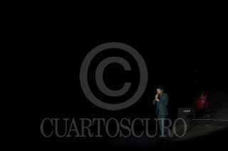 OAXACA, OAXACA, 03NOVIEMBRE2013.- Joaquín Sabina cantautor español visitó este fin de semana la ciudad de Oaxaca donde presentó su espectáculo "Canciones para una crisis" en el teatro Álvaro Carrillo, el cual lució a su máxima capacidad. Durante el recital el cual tuvo una duración de más de dos horas, el cantante recordó a Chavela Vargas a quien confesó aún extraña. FOTO: ARTURO PÉREZ ALFONSO /CUARTOSCURO.COM