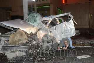 MÉXICO D.F. 03NOVIEMBRE2013.- Dos jóvenes pierden la vida, al impactarse con el auto en que viajaban contra la fachada de un negocio sobre Periférico a la altura de San Jerónimo.. Paramédicos de Cruz Roja, acudieron al apoyo de este accidente donde certificaron la muerte de estos jóvenes. FOTO: LUIS CARBAYO /CUARTOSCURO.COM