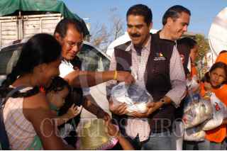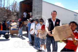 CANCUN, QUINTANA ROO 28OCTUBRE2005.- El conductor de TV Azteca, Javier Alatorre encabezo la entrega de despensas y ropa a los habitantes damnificados por el huracan º Wilmaº. FOTO: TV Azteca/CUARTOSCURO.COM