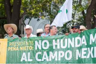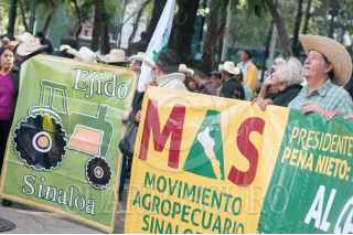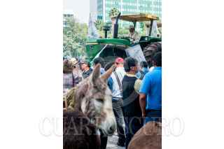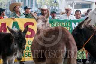 MÉXICO, D.F., 05NOVIEMBRE2013.- Campesinos de varios estado del norte del país durante su llegada a la glorieta del Ángel de la Independencia para iniciar una marcha rumbo a la Secretaría de Gobernación en demanda de un pago justo por sus productos y terminar con los altos precios de la canasta básica que sacrifica los ingresos de millones de consumidores mexicanos. La movilización con varios tractores, burros y caballos. FOTO: DIEGO SIMÓN SÁNCHEZ /CUARTOSCURO.COM