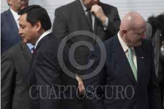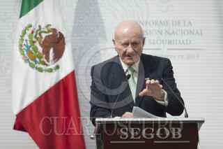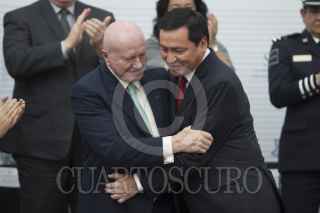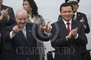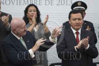 MÉXICO, D.F., 05NOVIEMBRE2013.- Manuel Mondragón y Kalb, Comisionado Nacional de Seguridad, y Miguel Ángel Osorio Chong, Secretario de Gobernación, durante el primer informe de Labores que presentó el Comisionado de Seguridad Nacional. FOTO: IVÁN STEPHENS /CUARTOSCURO.COM