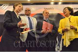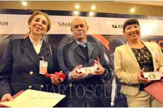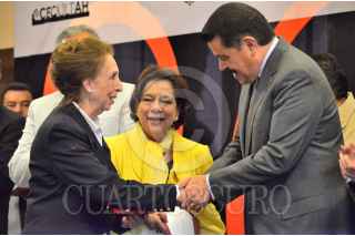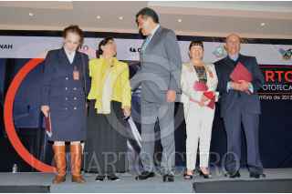 PACHUCA, HIDALGO, 07NOVIEMBRE2013.- Paulina Lavista, María Teresa Franco, directora del INAH; José Francisco Olvera Ruiz, gobernador de Hidalgo; Margarita Sosa, encargada del acervo de la Fototeca Nacho López, y Rubén Cárdenas Paz. Arrancó el Décimo Encuentro Nacional de Fototecas, en el marco de la celebración de los 20 años del Sistema Nacional de Fototecas (SINAFO), que se llevará a cabo durante 3 días en la ciudad sede de la Fototeca Nacional, Pachuca. El encuentro tiene preparada una agenda que incluye exposiciones, mesas de discusión y talleres. FOTO: MARÍA JOSÉ MARTÍNEZ / CUARTOSCURO.COM