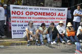 MÉXICO, D.F., 08NOVIEMBRE2013.- Comerciantes y locatarios de distintos mercados de la ciudad, se manifestaron sobre avenida Bucareli, afuera de la Secretaría de Gobernación en protesta por la reforma hacendaria que impulsa el gobierno federal. FOTO: DIEGO SIMÓN SÁNCHEZ / CUARTOSCURO.COM