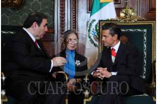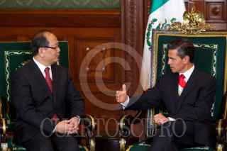 MÉXICO, D.F., 08NOVIEMBRE2013.- El Presidente Enrique Peña Nieto recibió hoy en el Palacio Nacional, la carta credencial del embajador de la Qiu Xiaoqi, de la República Popular China. Estuvo acompañado por el Secretario de Relaciones Exteriores, José Antonio Meade Kuribreña. FOTO: PRESIDENCIA /CUARTOSCURO.COM