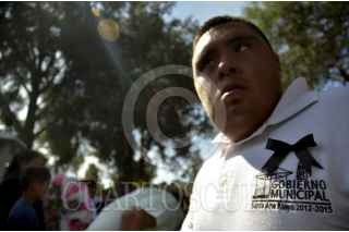 SANTA ANA MAYA, MICHOACANA, 09NOVIEMBRE2013.- Más de 2 mil personas acompañaron el último paseo fúnebre de Ygnacio López Mendoza, ex presidente municipal de Santa Ana Maya, un pueblo michoacano colindante con el estado de Guanajuato. El edil apareció muerto la mañana del jueves, sostuvo una huelga de hambre durante 18 días a las afueras de la sede del Senado de la República, sobre Av. Reforma en la capital del país. El edil, quien estaba por reincorporarse a sus funciones, fue torturado y asesinado, según versiones de colegas, familiares y de la Procuraduría de Justicia Guanajuato, en el estado de Guanajuato en una brecha en la comunidad que colinda con el municipio michoacano de Santa Ana Maya, situado sólo a 7km de esa cabecera municipal. FOTO: ALAN ORTEGA /CUARTOSCURO.COM