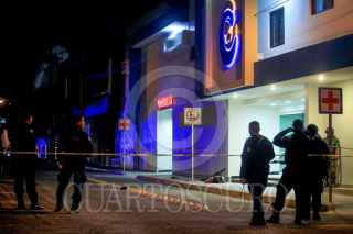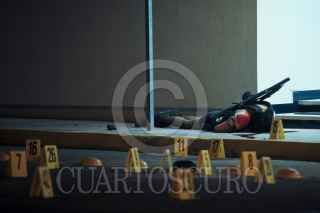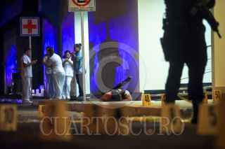 CULIACÁN, SINALOA, 10NOVIEMBRE2013.- En la clínica Santa María, ubicada en la esquina de la calle Francisco Villa y callejón Corona, en la colonia Jorge Almada, un comando armado irrumpió el lugar para llegar a la habitación Jesús Alonso River Ruiz, de 37 años, quien desde el 7 del presente mes se encontraba internado a consecuencia de las heridas de bala que sufrió durante el pasado atentado. Cuando se daba a la fuga dicho comando armado los sicarios fueron agredidos por sujetos desconocidos que cuidaban a la víctima, iniciándose una balacera afuera de la clínica, quedando muerto uno de los presuntos gatilleros, junto a él quedó un rifle tipo AK-47 con lanza granadas, el cual fue incautado por las autoridades. En el lugar de los hechos cientos de casquillos de grueso calibre fueron localizados. FOTO: RASHIDE FRIAS /CUARTOSCURO.COM
